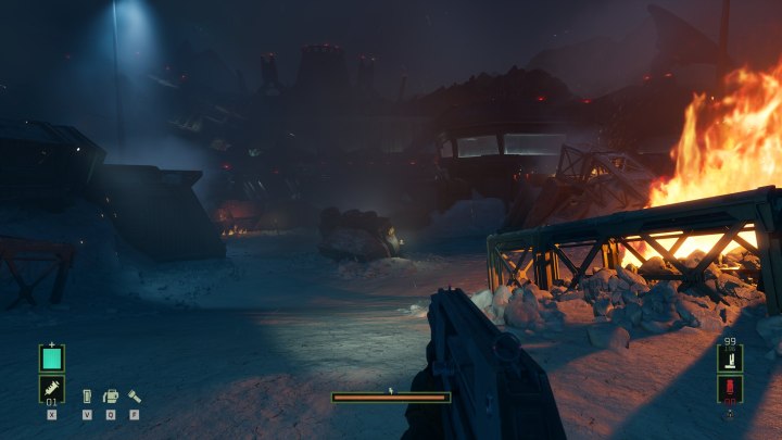 Графика в игре не самая передовая, но движок Unreal Engine 5 обеспечивает приятную картинку. Окружение и освещение кое-где выглядит простоватыми, зато не придется высматривать монстров в слишком темных углах. Но есть и симпатичные интерьеры с блеском металлических поверхностей и клубами пара в свете огней. А где-то сквозь разбитые окна дует ветер, гоняя мелкие снежинки.