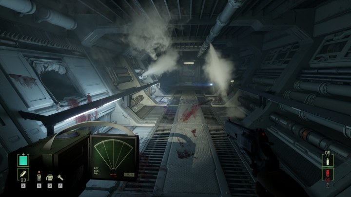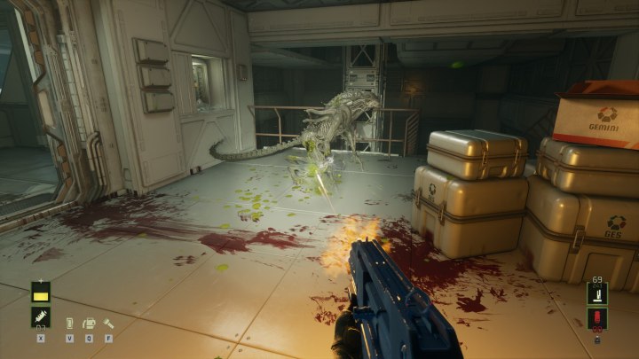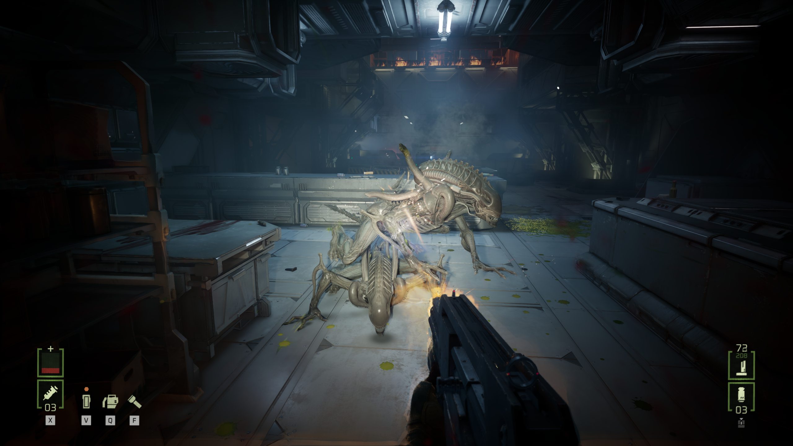 Дальнейшие стычки демонстрируют чудеса отвратительного искусственного интеллекта. Ксеноморфы передвигаются по потолку и стенам, но спрыгивают в странных местах, иногда избегая нас или наворачивая круги в одной точке. Они могут даже где-то потеряться — метка не сканере рядом, а монстр никак не вылазит. Реакция на попадания отвратительная, импакта от оружия нет. Передвижения у героини немного скованные, а прицеливание очень медленное. Радует только аутентичное киношное стрекотание винтовки.