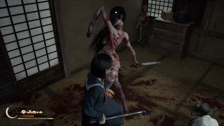 Первое время Хинако может только убегать и шарахаться по закоулкам. Но потом она подберет кусок трубы, чтобы вступить в открытое противостояние. Боевая система предлагает быстрый и затяжной сильный удар вместе с уклонениями и парированиями. Не случайно некоторые увидели в игре аналогии с Souls-играми, но такое сравнение поверхностное. Хотя на фоне других игр серии это действительно крепкая и хорошо отлаженная боевая система с четким контролем, но и с высокими требованиями к реакции игрока.