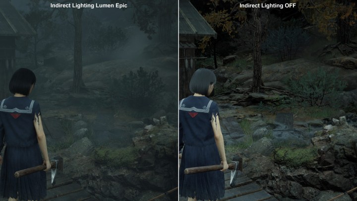 А вот при полном отключении Lumen пропадает объемный туман, что полностью убивает всю атмосферу. Так что для непрямого освещения отключать Lumen нельзя ни в коем случае.