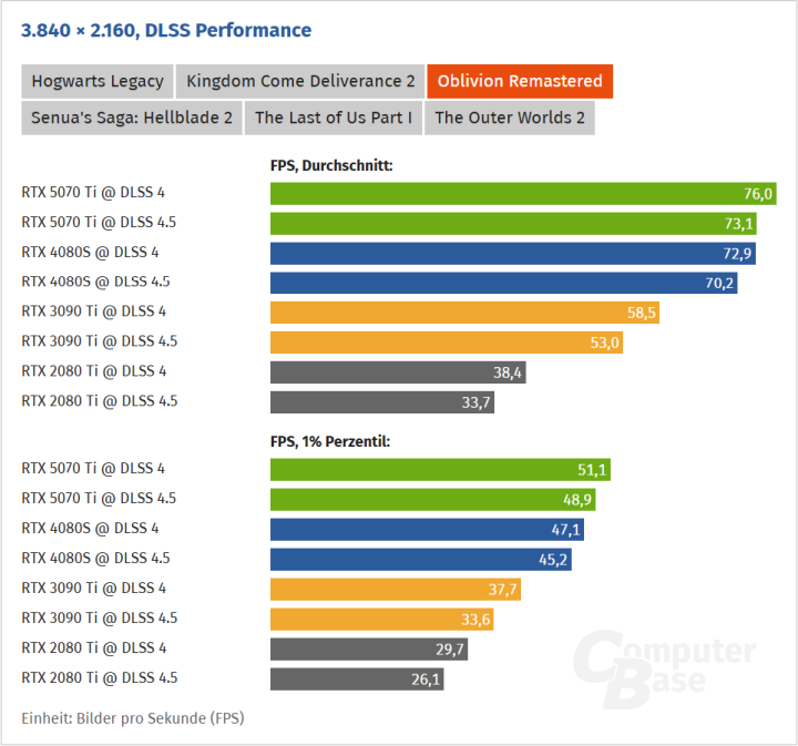 Немецкий портал Computerbase.de протестировал несколько видеокарт разных поколений с DLSS 4.5/4 в шести играх при разрешении 3840x2160. Отметим, что все тесты проведены в режиме масштабирования Performance. При анонсе новой версии DLSS компания NVIDIA акцентировала внимание на том, что именно производительные режимы выглядят лучше всего с новой моделью Transformer.