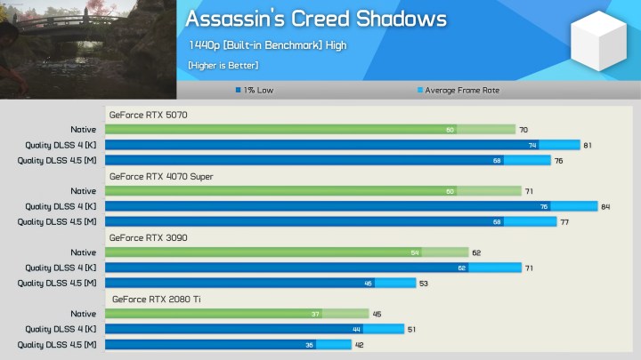 Такие серьезные потери производительности приводят к тому, что GeForce RTX 2080 Ti в режиме DLSS 4.5 Quality выдает меньше кадров, чем в нативном формате.