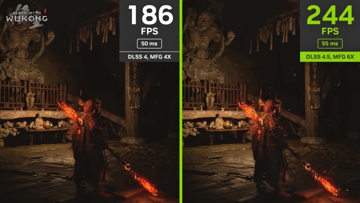Это прокачанная версия MFG 4X, которая теперь работает с множителем 6X, то есть создает до пяти дополнительных кадров! Все это сочетается с технологией уменьшения системных задержек NVIDIA Reflex, чтобы улучшить отклик на действия пользователя.