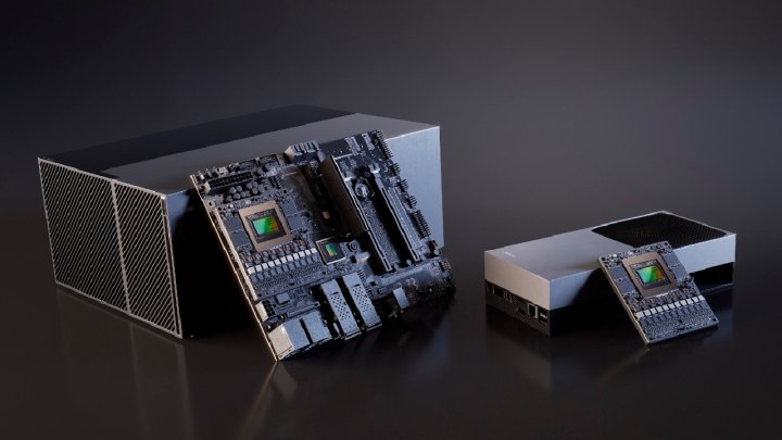 NVIDIA IGX Thor — это компактные суперкомпьютеры с ИИ, которые могут работать с множеством датчиков и периферийными устройствами, обеспечивая аналитику в реальном времени и множество дополнительных функций безопасности. Такие системы адаптированы для применения в сферах промышленной автоматизации, медицинской визуализации и в хирургической робототехнике. Платформа оснащена двумя типами графических процессоров Blackwell — интегрированным (iGPU) и дискретным (dGPU), — обеспечивая производительность 5581 терафлопс FP4 вычислений для ИИ с сетевым подключением 400 GbE. Относительно NVIDIA IGX Orin новые устройства IGX Thor до 8 раз быстрее в ИИ-вычислений на iGPU и в 2,5 раза быстрее в вычислениях на dGPU. Платформа опирается на программный стек технологий стек NVIDIA AI Enterprise, поддерживая микросервисы NVIDIA NIM, NVIDIA Isaac, NVIDIA Metropolis и NVIDIA Holoscan.