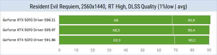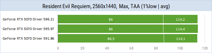 В данном сравнении протестировано три версии драйвера, которые выходили в течение одного квартала. Какое-то небольшое улучшение производительности замечено в ARC Raiders и Battlefield 6. В остальных играх все на уровне погрешности, включая недавний экшен Resident Evil Requiem. Возможно, в отдельных играх и на других видеокартах разница между этими версиями NVIDIA WHQL Game Ready заметнее. На данное тестирование на GeForce RTX 5070 показывает, что в отсутствие ошибок и технических проблем обновление на последний видеодрайвер имеет смысл только ради новых функций в NVIDIA App. Ну или вы столкнулись с какой-то ресурсоемкой игрой, которую активно правят патчами — тогда обновление драйвера тоже будет правильной рекомендацией. Если играет во что-то старое, то можно пропустить несколько релизов и ничего критического не произойдет.